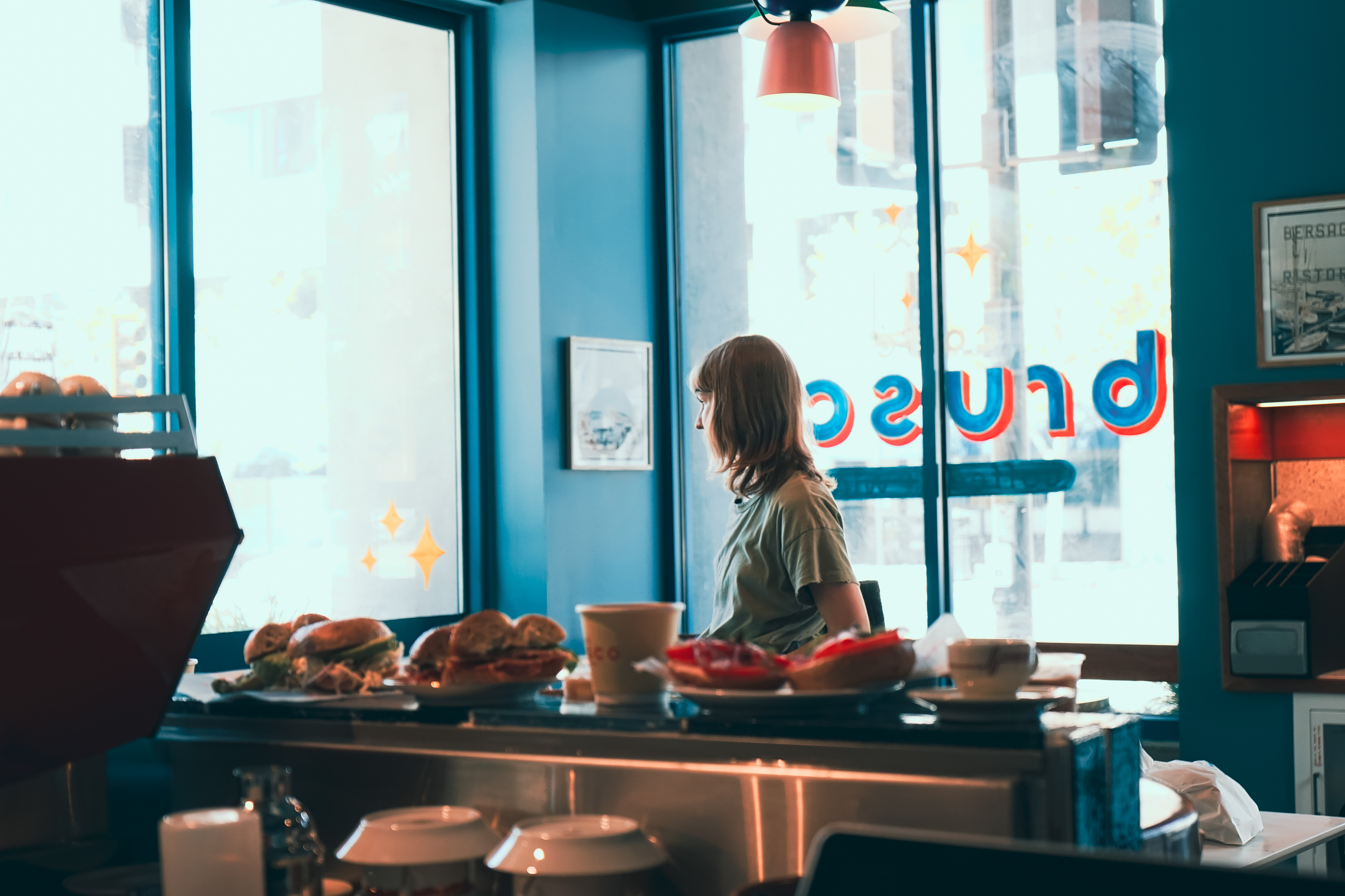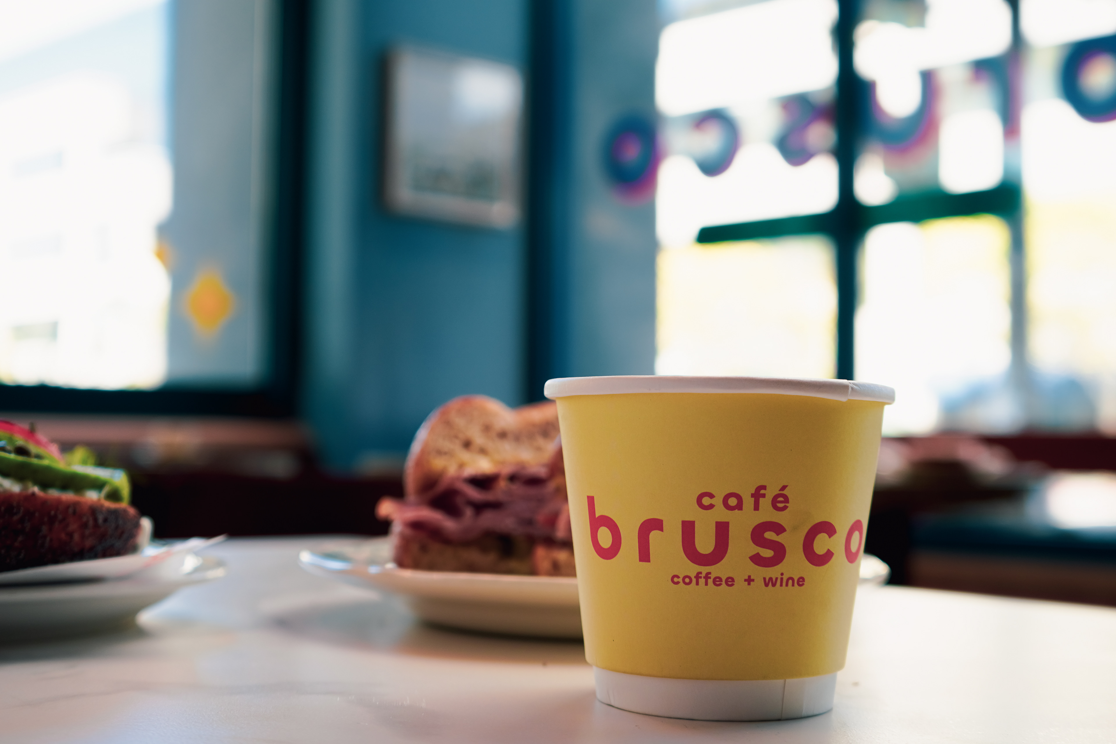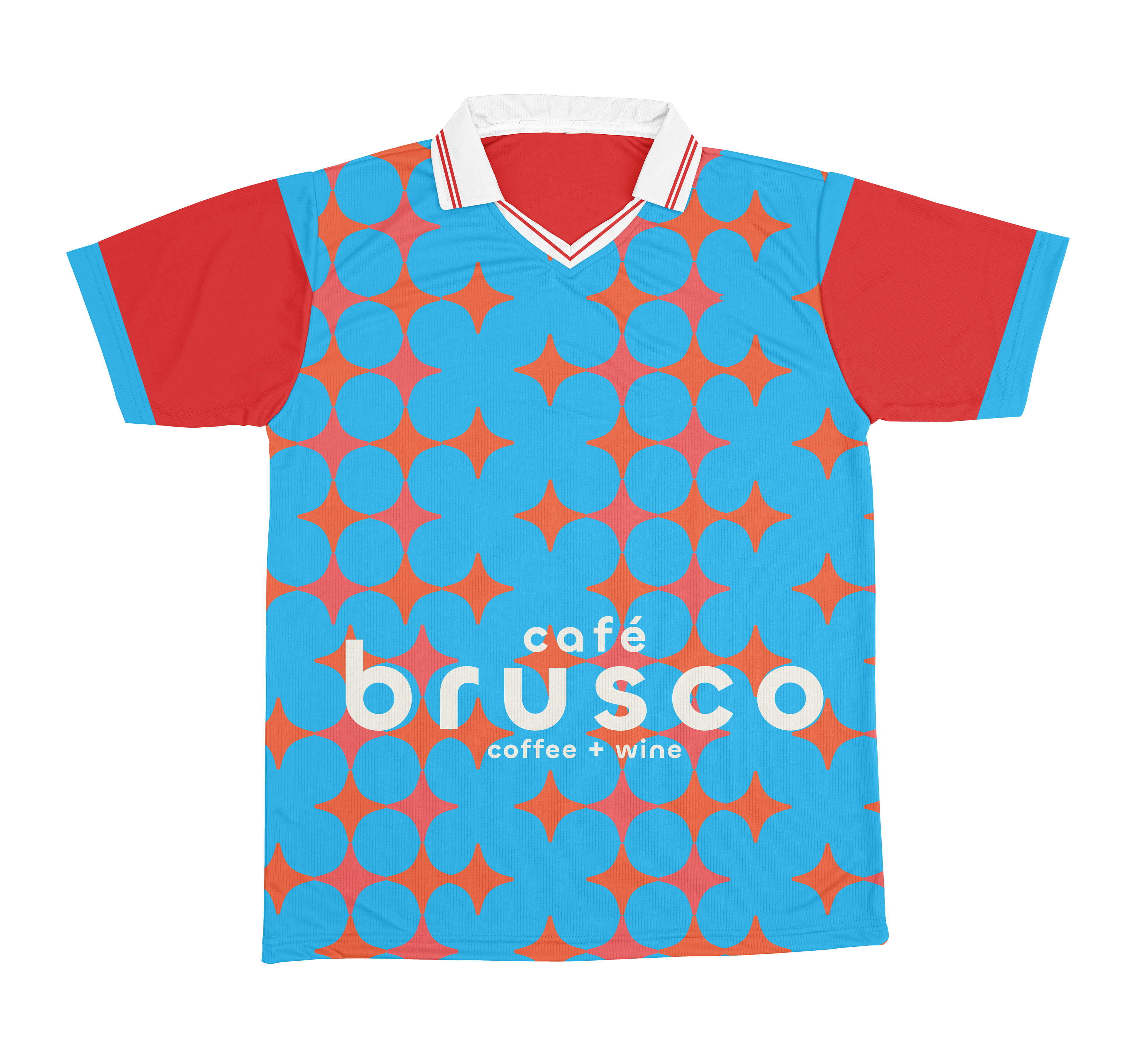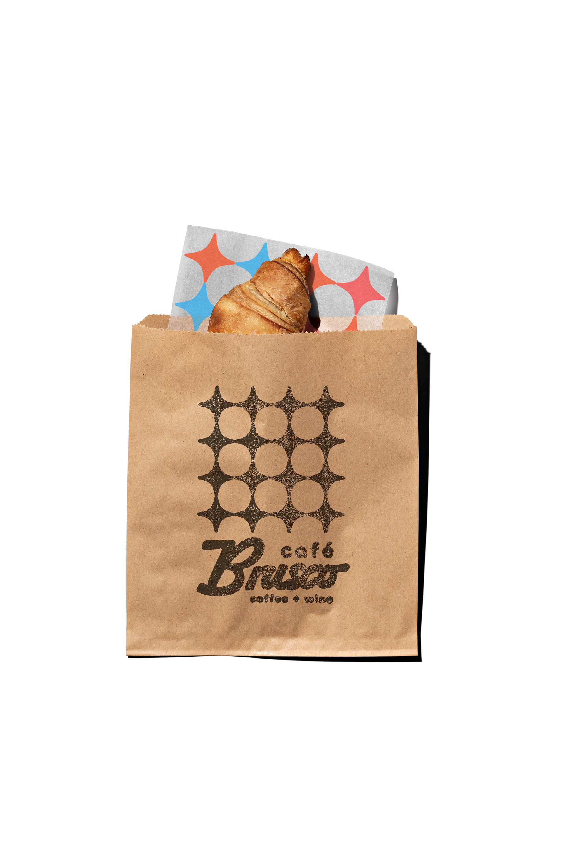 Café Brusco is a coffee shop and wine bar in Berkeley, California, created by the team behind Rose Pizzeria. Located at 2000 University Avenue, the space features swanky tiling, big sliding windows and colorful overhead lights, making it a stylish yet welcoming place to meet friends. By day, Brusco serves fresh house-made bagels with creative toppings. Rotating pastries from Good Luck Bakery. Brusco’s menu offers classic and iced coffee drinks, matcha lattes, and chai, alongside a curated evening wine list. The branding features a retro inspired starburst pattern and a warm color palette of coral, teal, sky blue and cream. Creating a cohesive identity that feels both nostalgic and fresh. Typography choices include a flowing script paired with a clean geometric sans serif, adding balance and personality across digital and print applications. Note: Some visual elements and applications may have been updated after opening to better suit the space and ambient vibe.