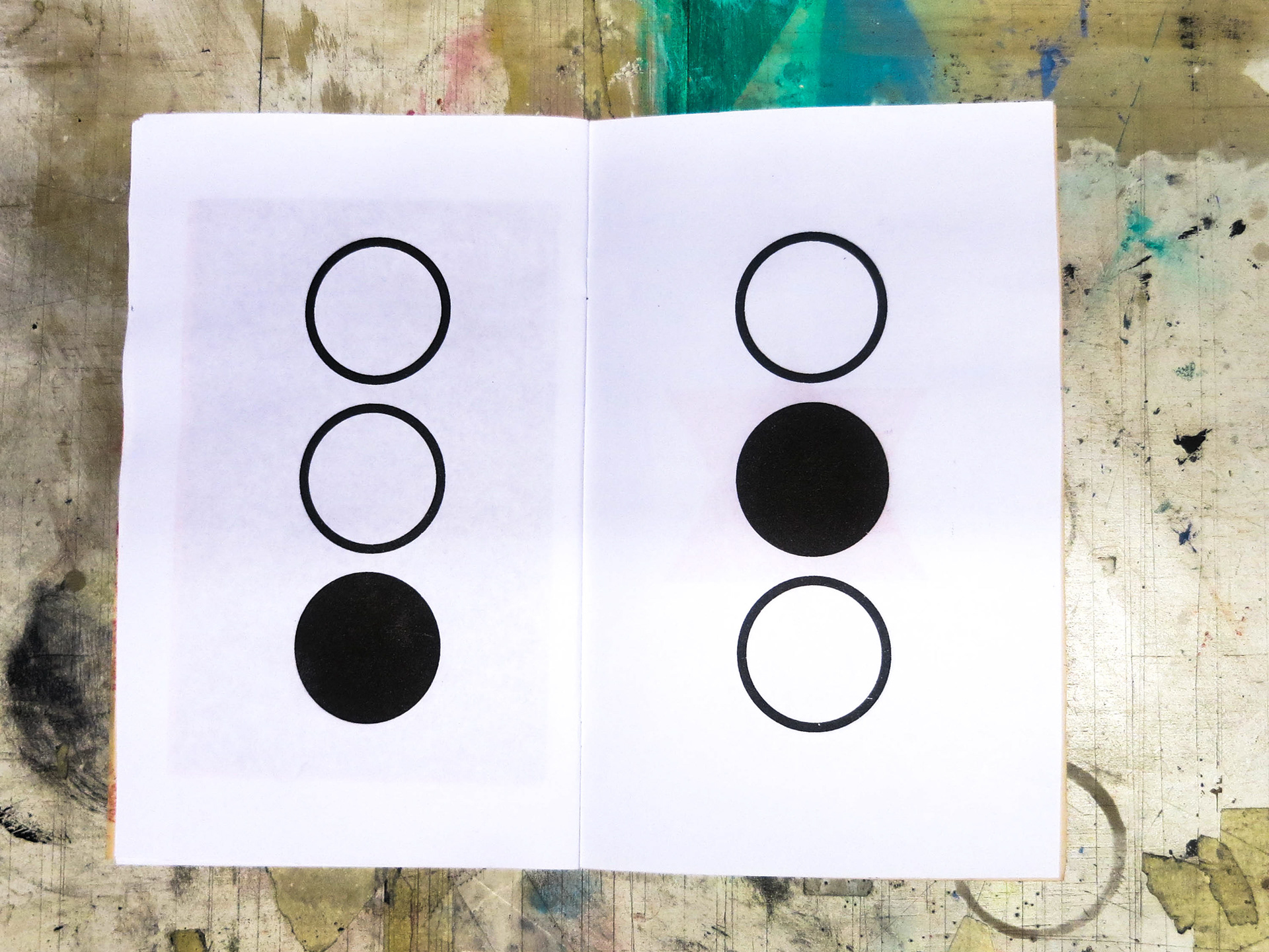 SOME SHAPES IN COLOR As the tittle describes nothing more nothing less. Printed beautifully using a RISOGRAPH duplicator. 5.25" X 8.5” 10 Pages / BW & R / French Paper Cover Self-Published 2015 /